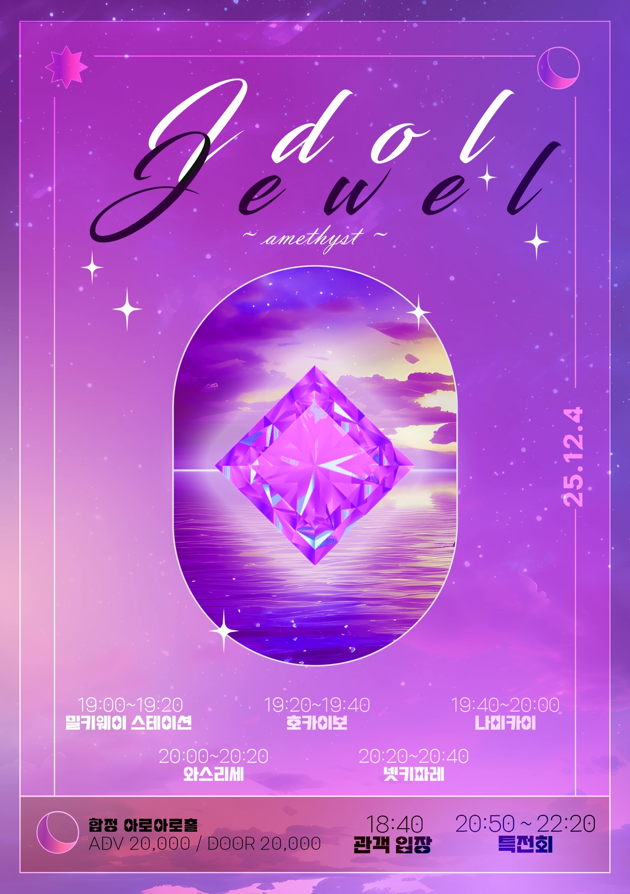 매 주 라이브 아이돌, 아니쿠라, 음감회, 성우극, 뮤지컬, 동인작가 전시회 등 다양한 행사 및 이벤트를 기획 중입니다.